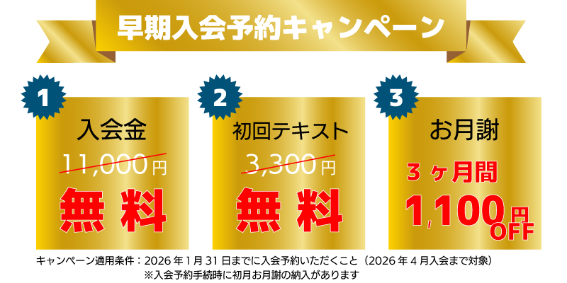 2026年1月31日までに入会予約いただくこと(2026年4月入会までの入会予約が可能)