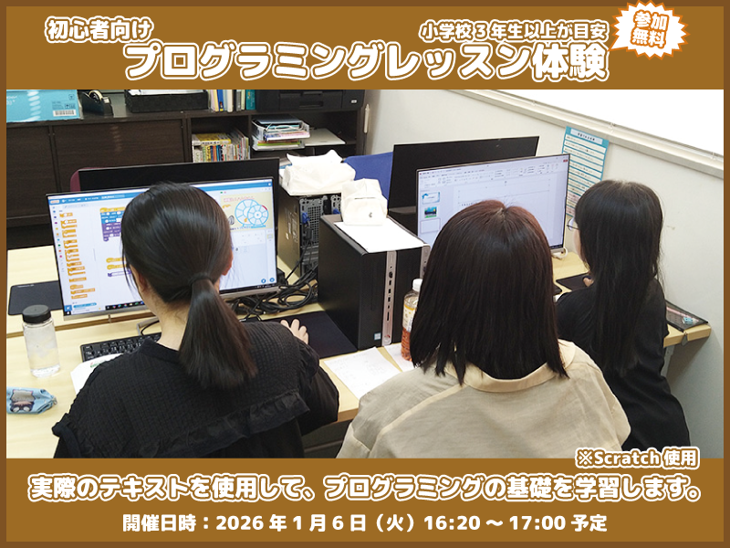 超少人数制(講師1に対しお子様は2名まで)の「成果が見える」札幌の小・中学生(高校生OK)向け「情報×プログラミング教室」寺子屋×ぷろぐれすです😀