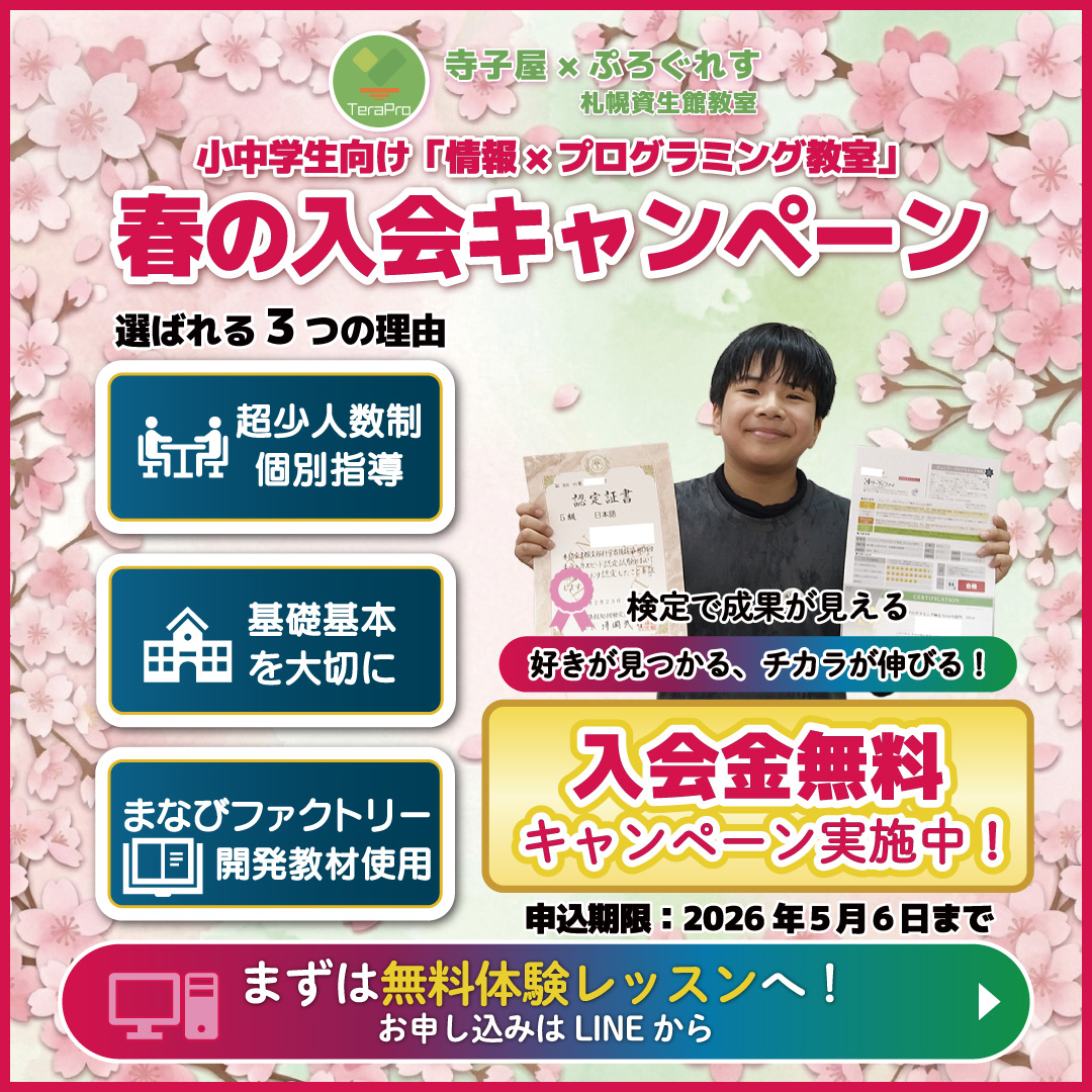 新年度に向けて、寺子屋×ぷろぐれす札幌資生館教室では新規入会を受付中です!
